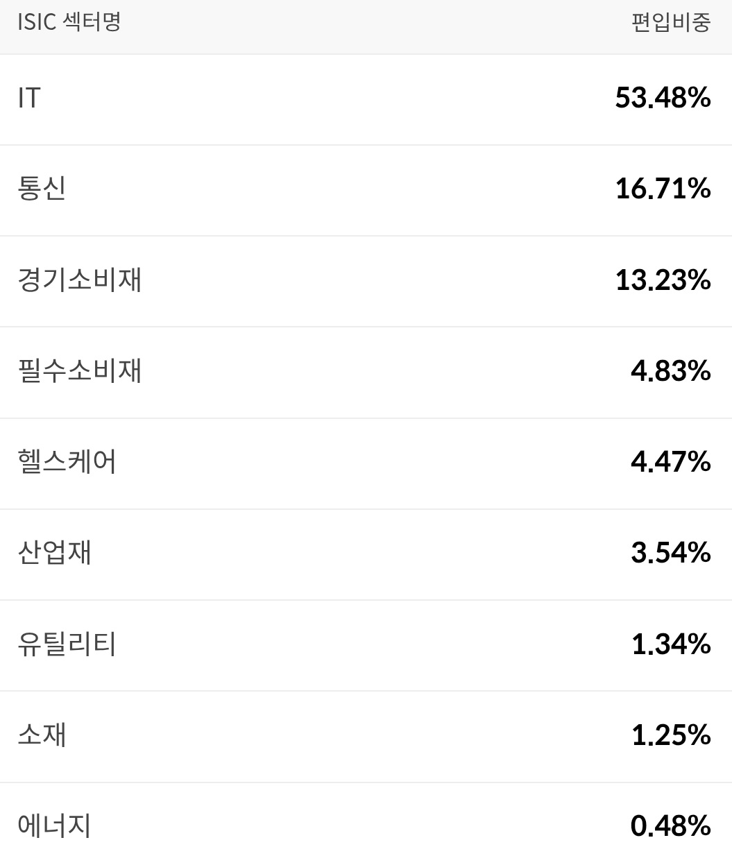 QQQ는 테크, 헬스케어, 커뮤니케이션 서비스 같은 고성장 업종 비중이 굉장히 높습니다. 특히 애플, 마이크로소프트, 엔비디아 같은 글로벌 빅테크 기업들이 비중을 크게 차지하죠. 이 때문에 QQQ는 “미국 기술주의 성장성에 투자하는 가장 대표적인 ETF”라고 불립니다.