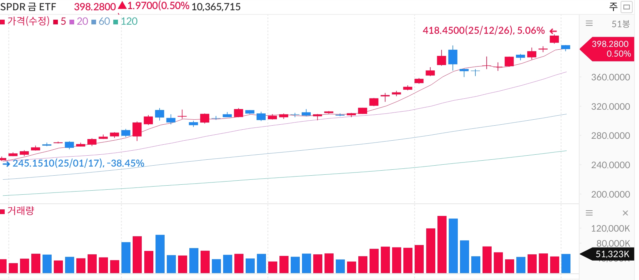 SPDR 금 ETF/iShares 금 ETF 차트