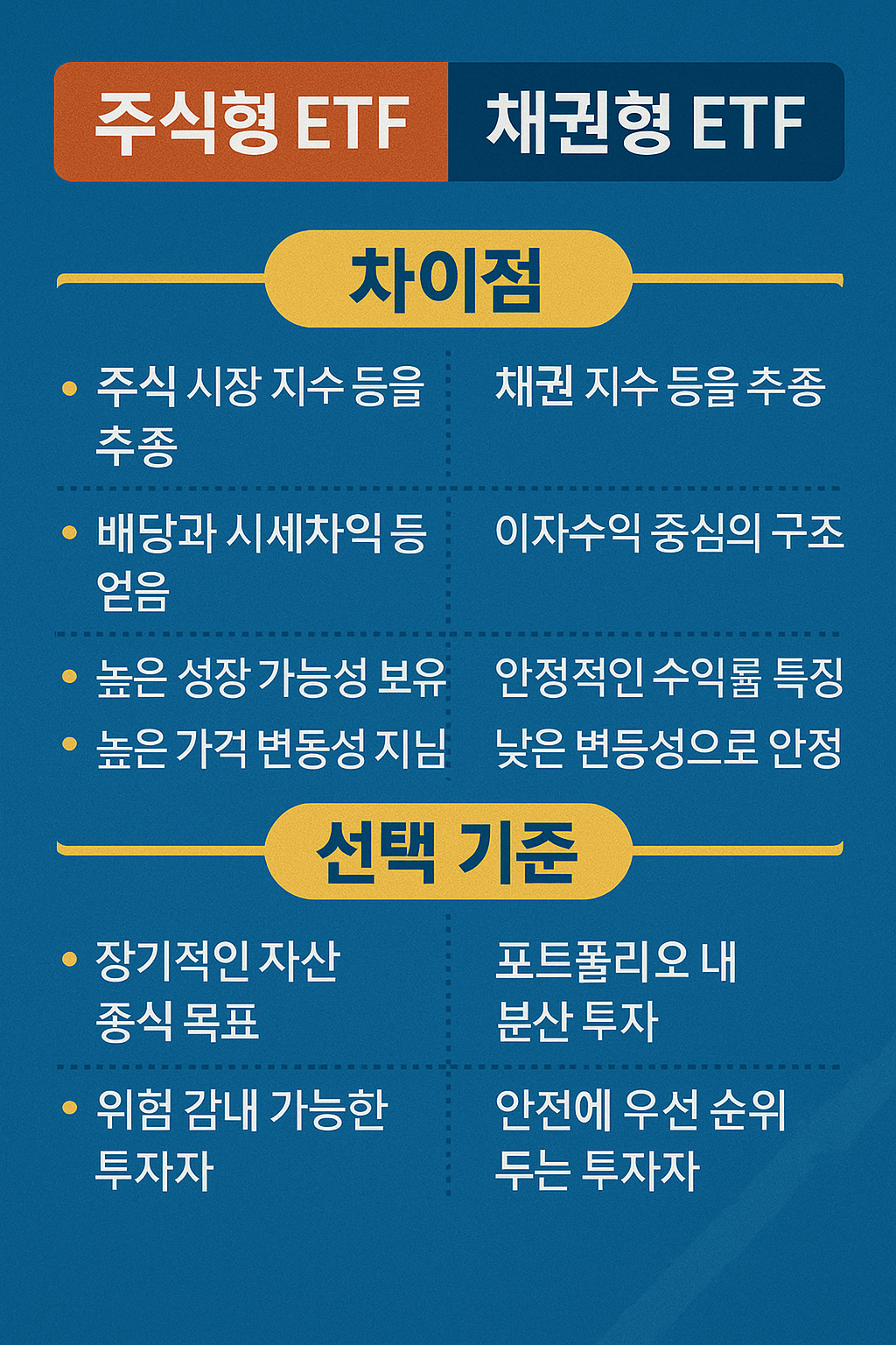 | 구분 | 주식형 ETF | 채권형 ETF |